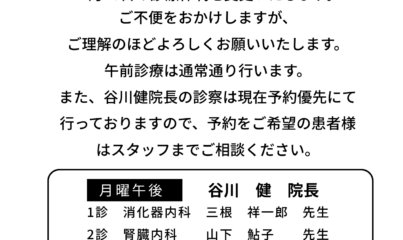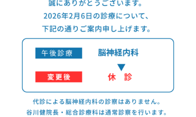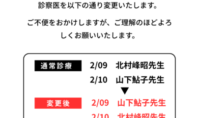 腎臓内科 担当医変更のお知らせ(2月9日・10日)